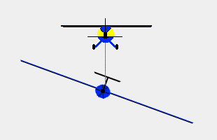 Maneuver your glider to the right of the tow plane and gently pull the tow plane's tail to the right, moving his nose to the left.